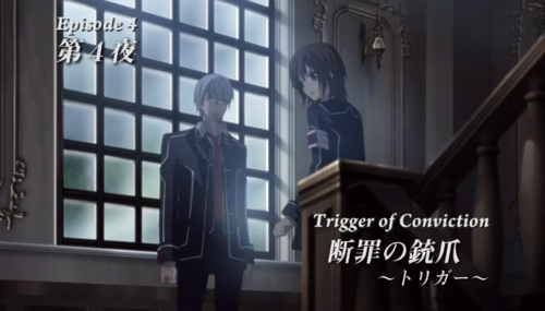 Episode picks up where three left off. I thought something interesting would have happened but it turned out differently. Since Zero has reached a point where he can no longer supress his urges, he has been transfered to the night classes. It's determined that he will become a degraded form of vampire. The episode ends with the chairman of the school being told that Zero will be investigated since he is the last heir of a Vampire Hunting Clan.